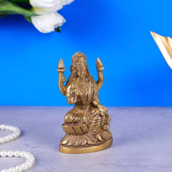 Antique Design: The Brass Laxmi Murti features an antique design that exudes a timeless charm and a sense of reverence. The antique finish adds depth and character making it a captivating and meaningful decorative piece.