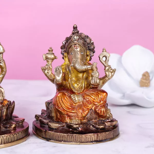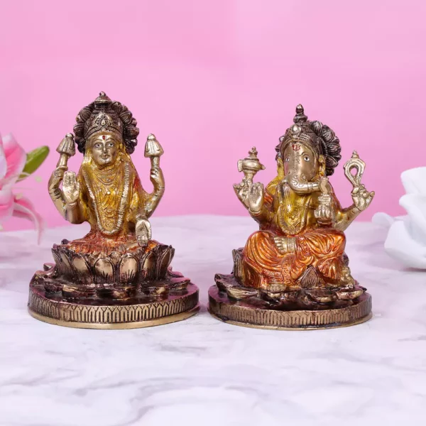 Intricate detailing: The intricate brass work on this Colored Laxmi Ganesh idol showcases the fine craftsmanship and attention to detail. Each feature and accessory of Laxmi and Ganesh such as their crowns and ornaments are meticulously designed adding a
