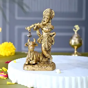 Brass Krishna Kanha with Cow Idol...