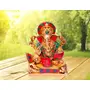 Artistically crafted Ganesha statue made of solid brass metal with colorful turquoise gemstone work. Unique handmade Ganesha. Lord Ganesha is symbolic of good luck at the beginning of all new initiatives. This pose captures his resting moments while reclaining against a bolster