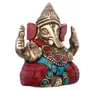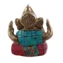 Artistically crafted small Ganesha statue made of solid brass metal with colorful turquoise gemstone work. Unique handmade Ganesha statue in small size. Lord Ganesha is symbolic of good luck at the beginning of all new initiatives.