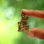 Green Tara is revered as the compassionate mother of all beings powerful protectress and subjugator of destructive forces. In each hand she holds the stems of rare lotuses that blossom at her shoulders. Her right hand is held in the gift-bestowing gesture extending the compassion and mercy that the lotus blossoms signify. Her right foot supported by a lotus is held in the attitude of descending suggesting Tara's readiness to respond. Cast in Brass and handpolished and refined by Indian craftsmen this is an extremely rare miniature metallic statue of Tara. Part of Purpledip miniature rare idols - collect as many as you can to build your own set. Sharply defined features are not to be expected in these miniature statues due to limitations of small size. Each piece may vary slightly in shape color and finish.