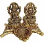 Sawcart Lord Lakshmi Ganesha Idol with Diya Made of Metal Laxmi Ganesh Oil Lamp Statue Traditional Figurine for Home Office Temple Diwali Puja Decoration Housewarming Gift Gold
