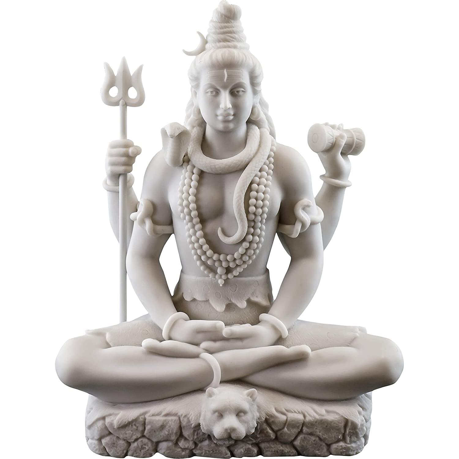 WOOD CARVING WORK Big Beautiful Shiva Sitting in Meditating Pose for Home Decoration-Glossy White-Marble