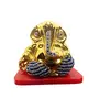 WOOD CARVING WORK Gold Coated Gem-like Stone Studded Ganesha Idol for dcor in car dashboard home and temple (Height: 7.5 cms X Length: 8.5 cms X Width: 5.5 cms; Weight: 85 grams)