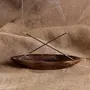 BIJNOR - METAL INLAY IN WOOD Wood Incense Holder and Ash Catcher | Wooden Agarbatti Stand with ash Catcher for Temple | Incense Stick Holder for Home | Agarbatti Stand for Office | Phool Incense Sticks Holder (Boat)
