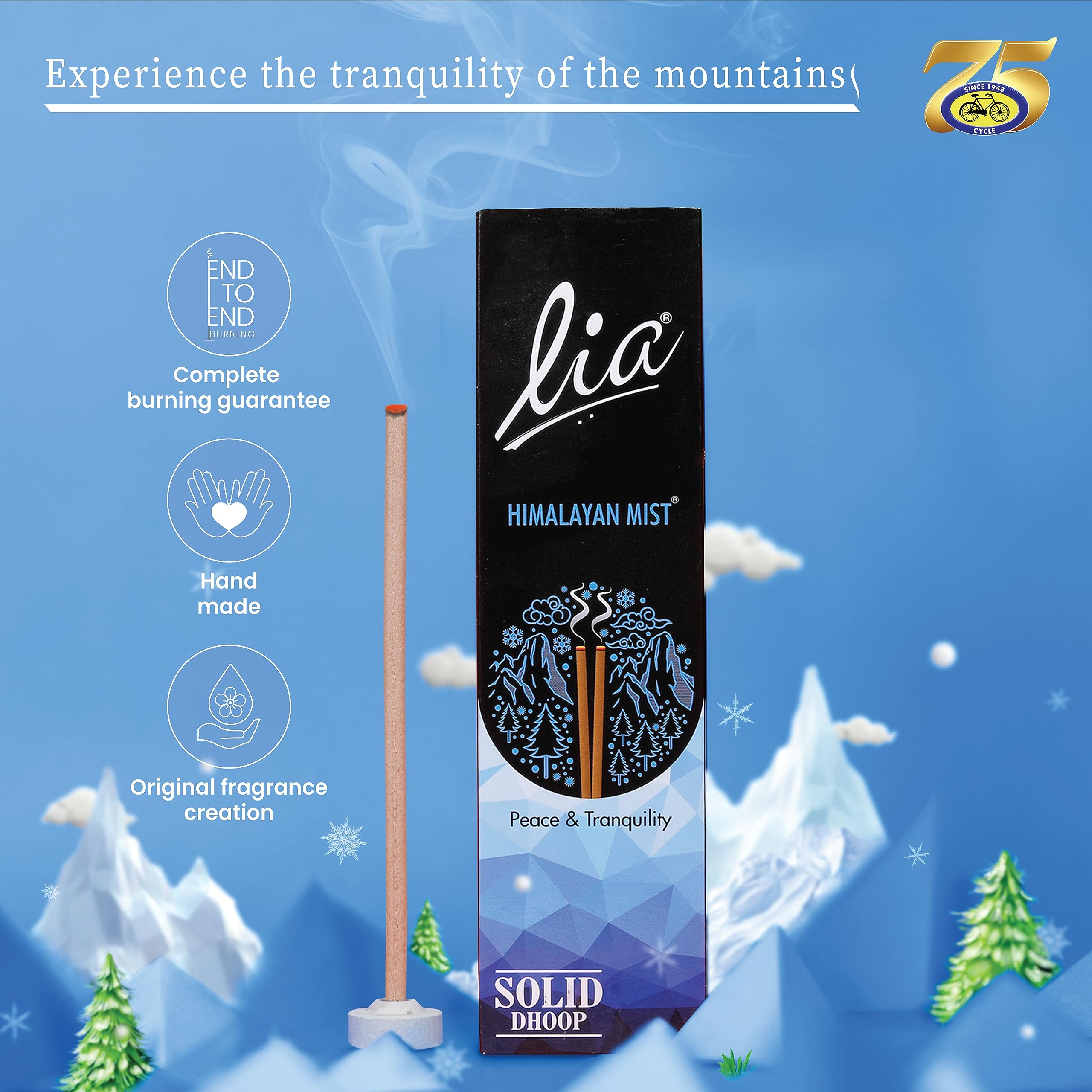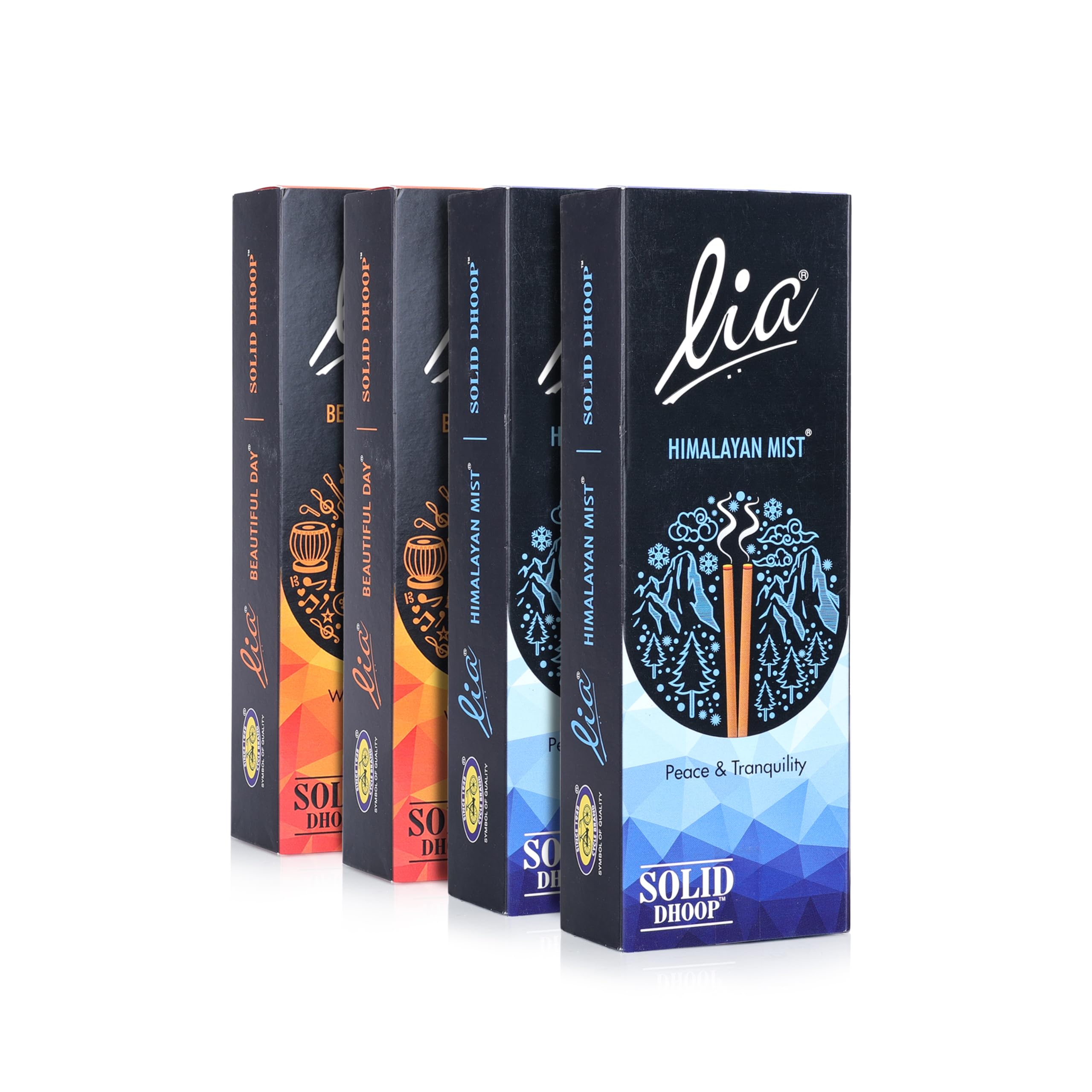 Lia Solid Dhoop Sticks are signature fragrant dhoop sticks from the House of Cycle Agarbatti. Beautiful Day Solid Dhoop Sticks - Experience the optimism of a new day with Lia Solid Dhoop Sticks Beautiful Day. The fresh cool fragrance of this dhoop evokes the feeling of relaxedly gazing at the clear blue sky. Brightens both your indoor and outdoor spaces. Fragrance Floral and Rose Himalayan Mist Solid Dhoop Sticks - Inspired by the spectacular snow-capped Himalayan peaks. The crisp aqua fresh fragrance of Lia Dhoop Sticks Himalayan Mist gives the feel of a splash of fresh mountain water. It is great for small gatherings evening prayer and yoga. Fragrance Crisp Fresh Aqua