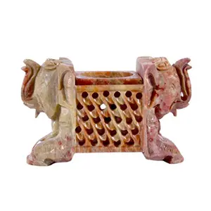 Soap Stone Carved 2 Elephant Face...