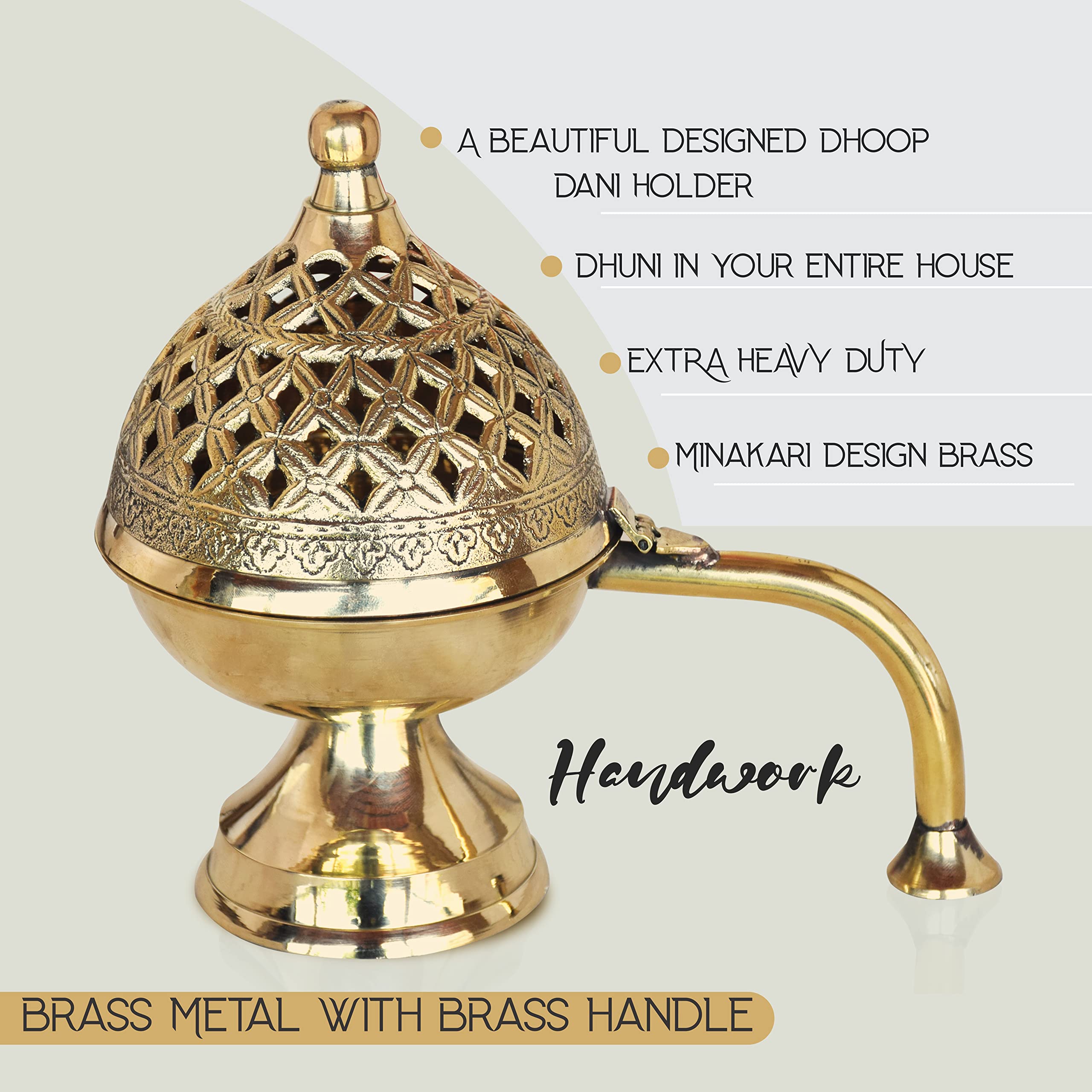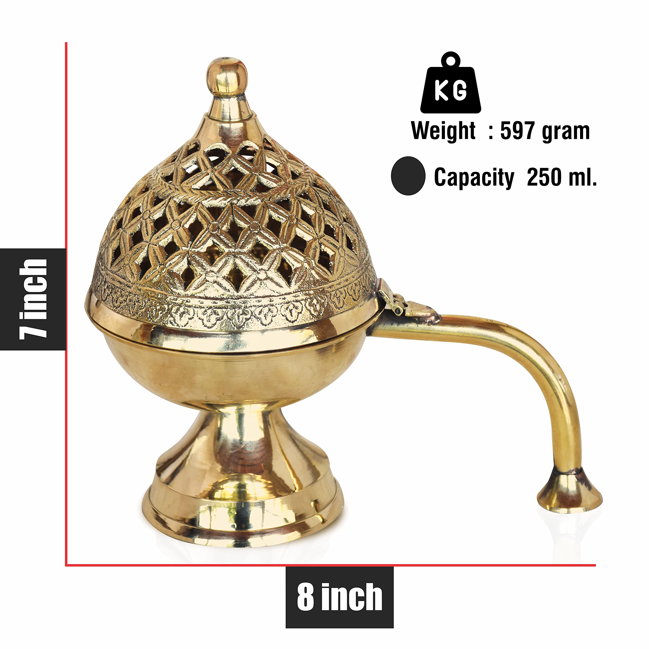 Pure Source India Brass Dhoop Dani | Bakhoor Holder | Loban Burner | Incense Holder, 8 Inch (600 Gram)