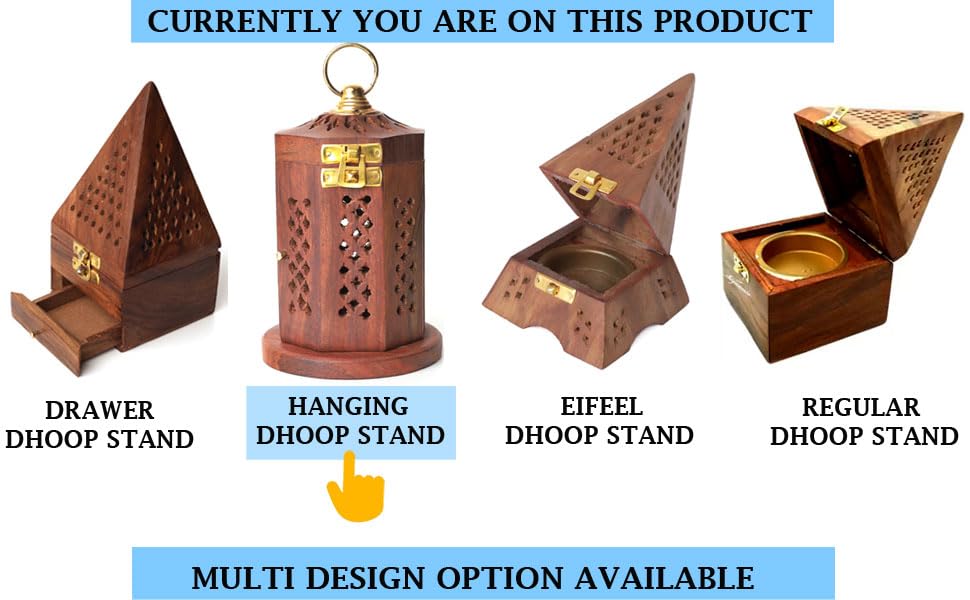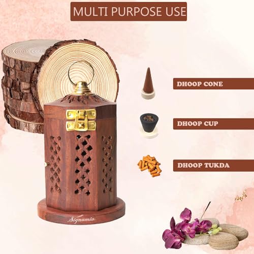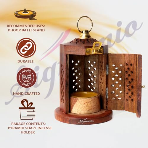 SIGNAMIO Hanging Wooden Sambrani Dhoop Dhup Cup Cone Batti Stand, Incense Holder for Pooja Puja Item Stand Ash Catcher Handcrafted Traditional Design for Aromatic Rituals - Pack of 1