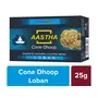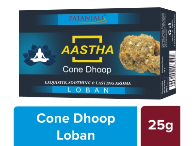 Aastha pooja products are made from best quality ingredients & aimed at creating a divine atmosphere. It is considered the natural LOBAN fragrance and the ayurvedic herbs has a great significance in controlling diseases and purifies the environment. This dhoop is made with natural herbs. It helps to stablish the connection between Aatma (inner soul) & Parmatma (almighty god) intact. (12 Cones.)Benefits - Lasting Aroma.Makes pleasant environment surrounding.Get rid of small insects.