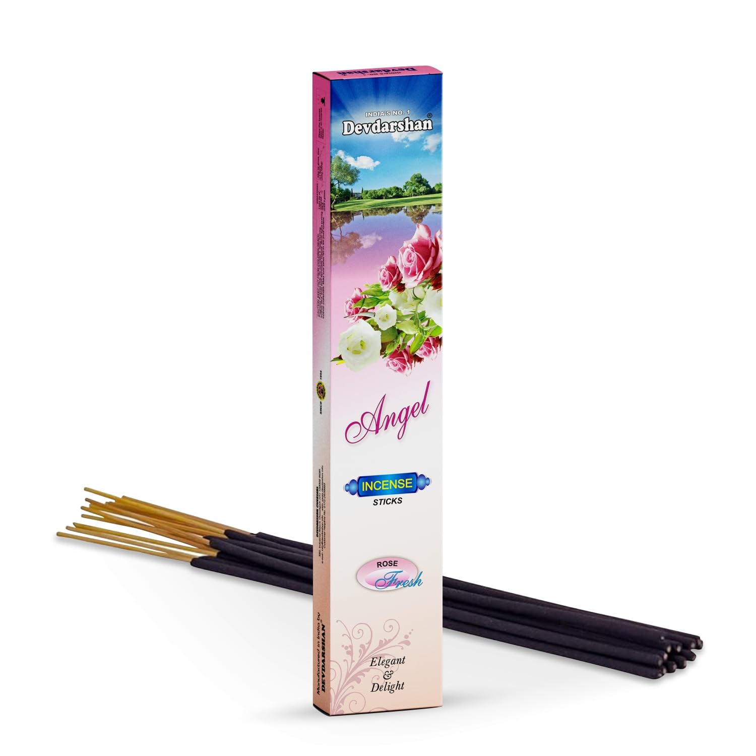 DevDarshan Angel Incense Sticks | Rose Fragrance | Long-Lasting, Soothing Aromatic Sticks, Meditation | Mood Enhancing | Aromatic Bliss for Mind and Soul | Pack of 24 (20g Each) 9" Stick