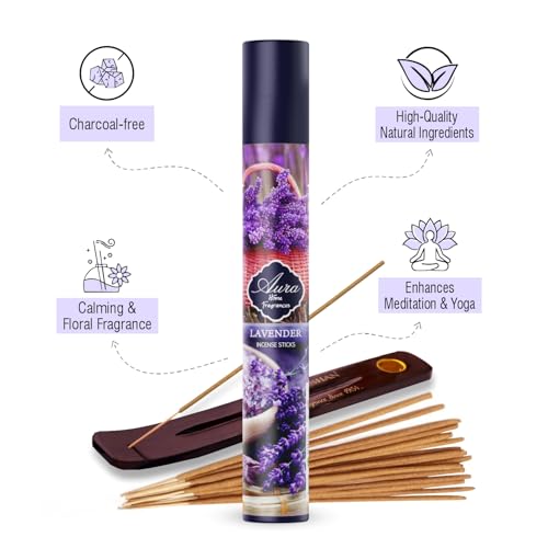 Devdarshan Aura Lavender 40 Incense Stick with FREE Incense Sticks Dhoop Cone Combo Holder Inside suitable for below 10 inch size Agarbatti