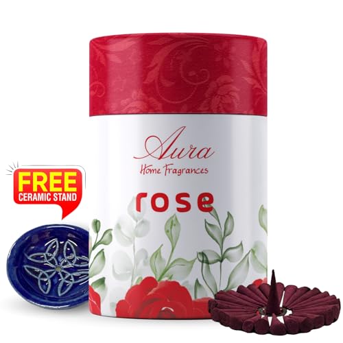 Aura Dhoop Cone Rose 150g in tube packing with FREE ceramic holder inside