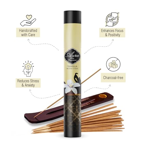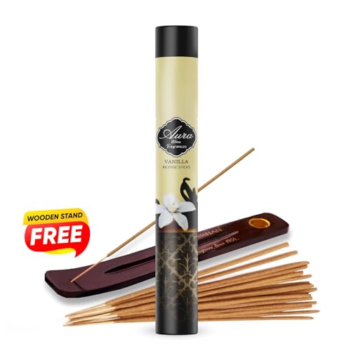 Devdarshan Aura Vanilla 40 Incense Stick with FREE Incense Sticks Dhoop Cone Combo Holder Inside suitable for below 10 inch size Agarbatti