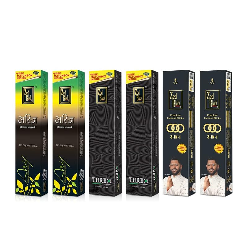 6 Boxes Inside Total 440 Incense Sticks Arij Large- 70*2 (140 Sticks) 3in1 Large- 80*2 (160 Sticks) Turbo Large- 70*2 (140 Sticks)