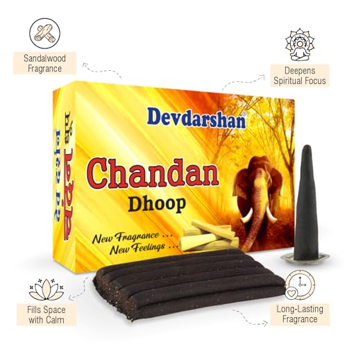 Transform your home into an enchanted sanctuary of peace and spirituality with Devdarshan Chandan Dhoop (Semi-Solid Dhoop Sticks). Chandan fragrance will gently float its way throughout your home instantly lifting the mood and creating a kind and inviting atmosphere.