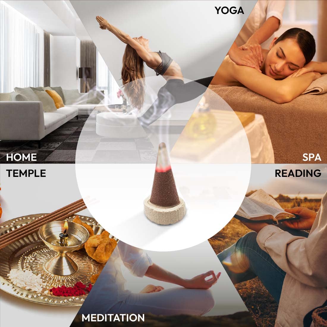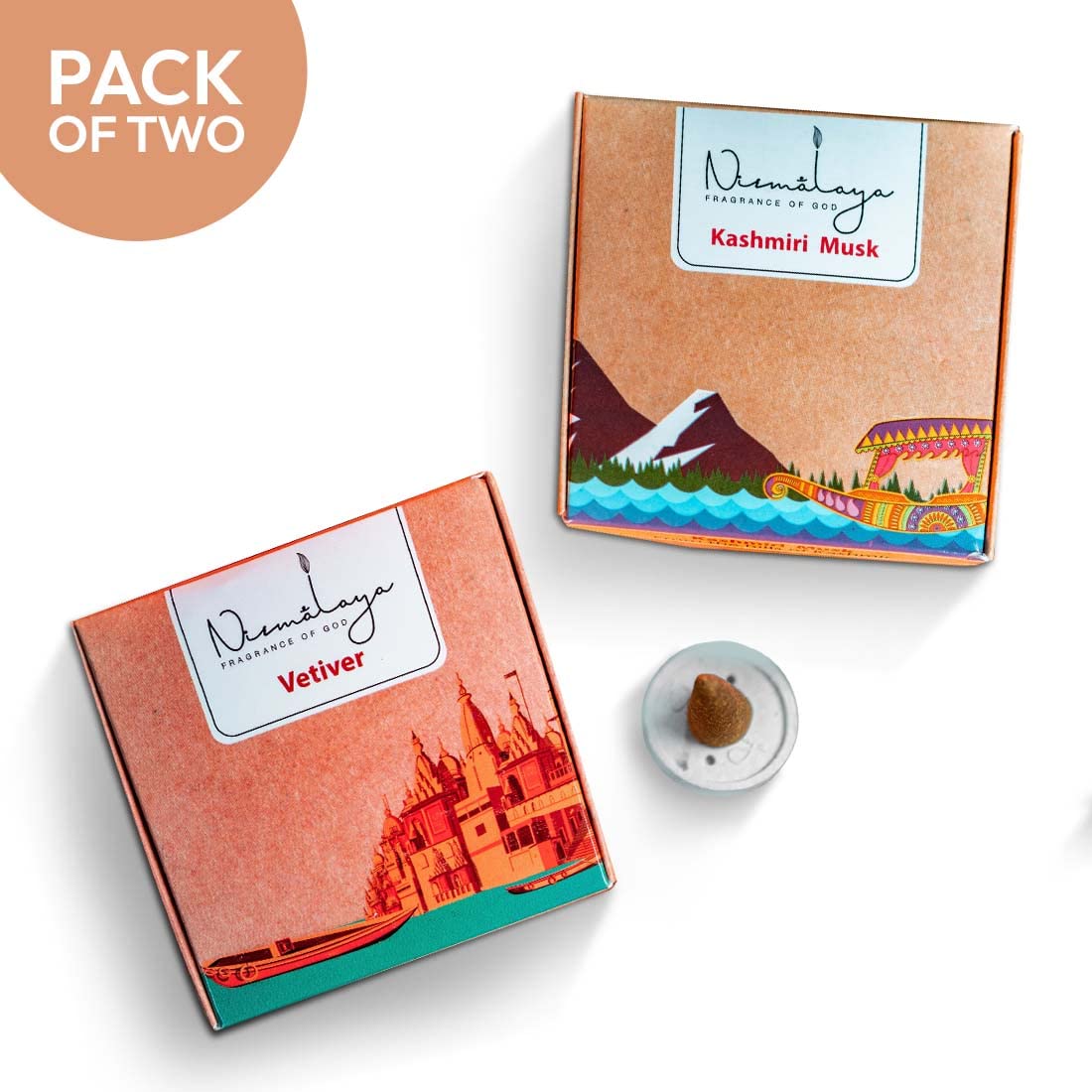 Zone out from the chaos of every day with the soothing aroma of Kashmiri Musk and Vetiver incense cones combo pack that are made from recycled flowers and dipped in pure essential oils so that you can be a step closer to nature. Experience the calm and serenity with Nirmalaya'sincense cones. They are also called âDhoop Conesâ or âAgarbattiâ. Reap the benefits of nature with Nirmalaya'sincense cones for pooja. These Dhoop cones for pooja have aphrodisiac properties and help instill feelings of peace happiness and confidence. Our organic Dhoop cones will bring joy to you and your loved ones. Nirmalaya incense cones for pooja are crafted with organic ingredients. These incense cones for fragrance are natural air purifiers that will keep your mood happy and your mind calm.