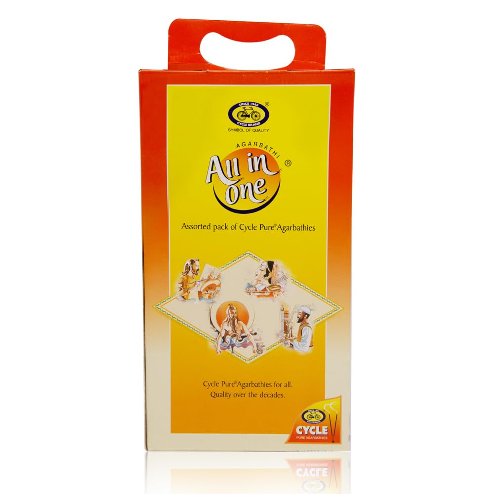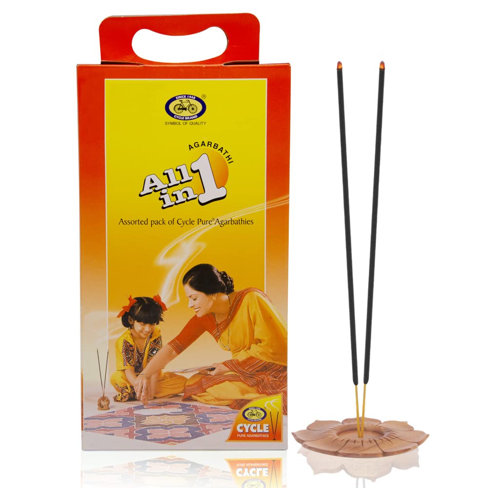 Inspired by the fragrant trails that incense sticks leave behind Cycle Pure brings to you All in One Agarbathies. An exotic and inspiring collection of mesmerising fragrances that have been popular and successful for decades. A gift that would be truly cherished this collection is bouquet of brilliant invigorating and celestial scents that makes a perfect gift for any special occasion. All you need is faith hope and divine fragrances to turn your home into a haven. Contents: Hand Crafted Agarbathies in 8 assorted packets (Net 191 nos.)