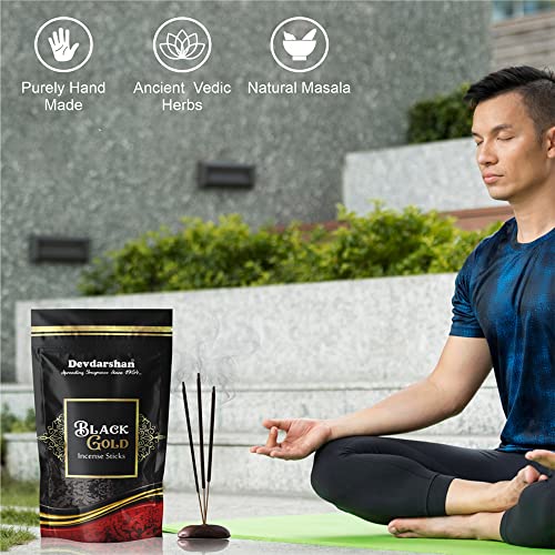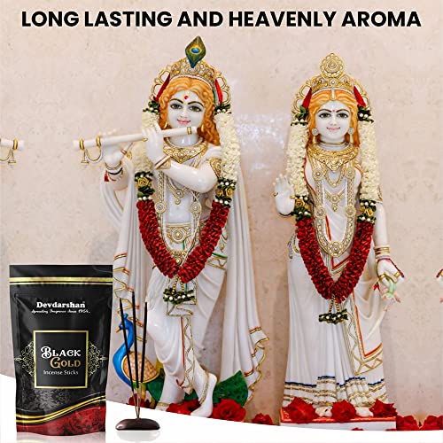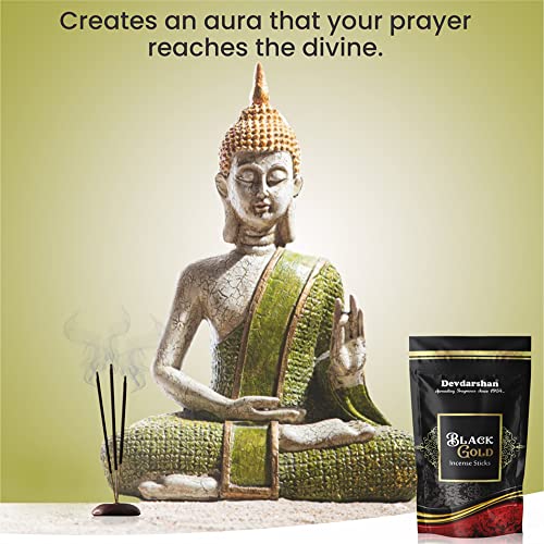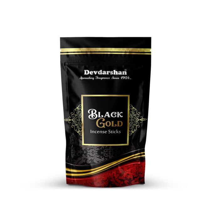 Transform your home into an enchanted sanctuary of peace and spirituality with Devdarshan Black Gold Agarbatti. Fragrance of Black Gold Agarbatti will gently float its way throughout your home instantly lifting the mood and creating a kind and inviting atmosphere. SAFETY INSTRUCTION: Always Keep burning dhoop / Incense sticks on dhoop / Incense stand / holder make sure you keep away from flammable articles ashes should always fall on fire proof or heat resistant surface.