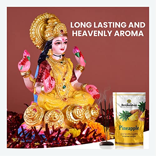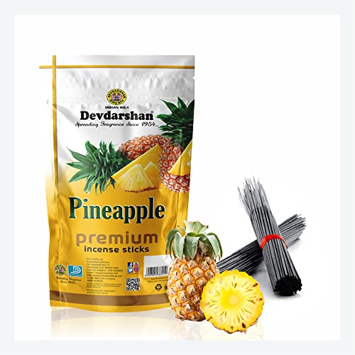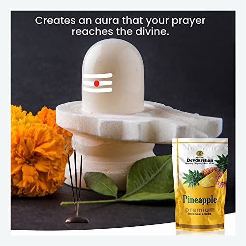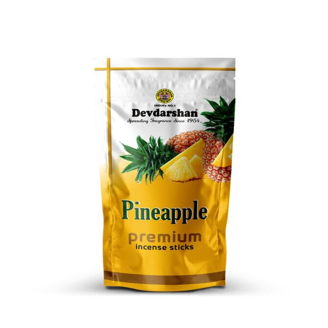 Transform your home into an enchanted sanctuary of peace and spirituality with Devdarshan Pineapple Agarbatti. Fragrance of Pineapple Agarbatti will gently float its way throughout your home instantly lifting the mood and creating a kind and inviting atmosphere. SAFETY INSTRUCTION: Always Keep burning dhoop / Incense sticks on dhoop / Incense stand / holder make sure you keep away from flammable articles ashes should always fall on fire proof or heat resistant surface.