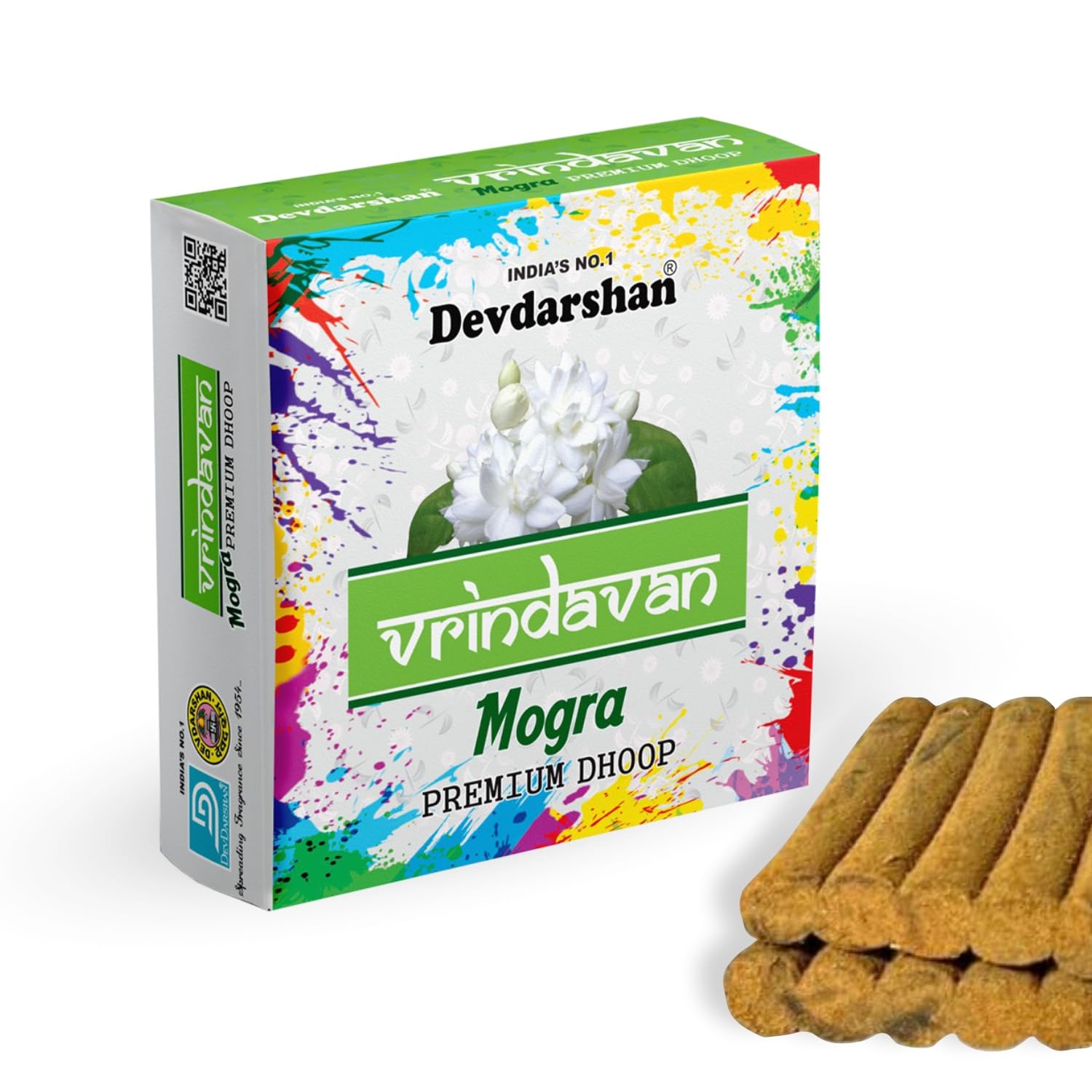 Devdarshan Vrindavan Mogra Premium Semi-Solid Dhoop | Soothing, Long-Lasting Aroma for Pooja, Yoga & Spiritual Rituals | Charcoal-Free & Eco-Friendly Incense – 240 Sticks (12 Units, 20 Sticks Each)