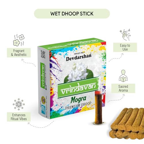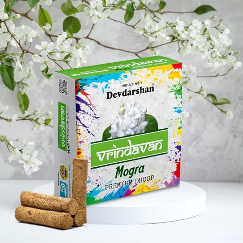 Transform your home into an enchanted sanctuary of peace and spirituality with Devdarshan Vrindavan Mogra Dhoop. This floral fragrance will gently float its way throughout your home instantly lifting the mood and creating a kind and inviting atmosphere. SAFETY INSTRUCTION: Always Keep burning dhoop / Incense sticks on dhoop / Incense stand / holder make sure you keep away from flammable articles ashes should always fall on fire proof or heat resistant surface.