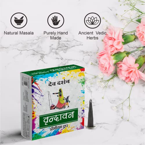 Devdarshan Vrindavan Premium Semi-Solid Dhoop | Soothing, Long-Lasting Aroma for Pooja, Yoga & Spiritual Rituals | Charcoal-Free & Eco-Friendly Incense – 240 Sticks (12 Units, 20 Sticks Each)
