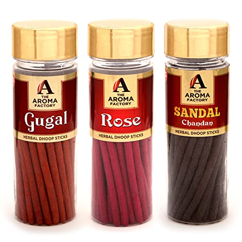 The Aroma Factory proudly presents its range of Dhoop Sticks Dhoop Batti in 6 Exclusive Fragances: Chandan Sandalwood Pure Gugal Shahi Loban Rose Royale Lavender Luck and Mogra. Try all 6 Dhoop Pooja Sticks to calm your soul and sooth the environment. . Try all fragrances of Agarbatti and Dhoop Batti by The Aroma Factory.
