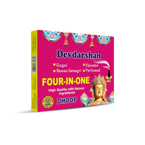 Devdarshan 4 in One dhoop (16 sticks 50g) comes in a combination pack of four fragrance in a single unit with fancy night queen chandan & guggal. Usage of the Dhoop / Incense sticks - For meditation or spiritual purpose. - Creates an aura that your prayer reaches the divine and is completed. - Healing power that has a soothing effect on the mind. Why Choose us? Since 1954 Devdarshan believed Quality is Highest Priority. We are manufacturing premium quality Dhoop Agarbatti Hawan Samagri Dry Dhoop Cones Chandan Dhoop Sticks & Sambrani Dhoop Cup Cones. The very name is an evidence for our popularity among the masses. Being at the culmination we have not only ruled out the markets nationwide but also abroad. We put forth every gesture just to serve the pious need of the masses to pray to the Almighty. Our Incense sticks are made from bamboo sticks and charcoal. They are made by creating the best mixture of essential oils barks flowers resins and they are worked into a tar like roll or they are just blended together. The combination of all these creates an amazing and pleasant aromatic smell offering you the best experience for all your purposes.