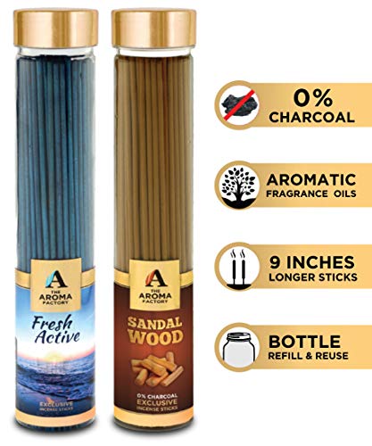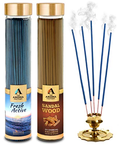 The Aroma Factory Fresh Active & Sandalwood Chandan Incense Sticks Agarbatti () Bottle Pack of 2 x 100 Experience the Soothing Scent of Exclusive Incense Sticks Agarbatti by The Aroma Factory - A Quality product by Panjon Limited. . Made with Natural Essential Oils and Content indulge in the Soothing Aroma of Incense Sticks by The Aroma Factory. Try all fragrances of Agarbatti and Dhoop Batti by The Aroma Factory : Incense Sticks Agarbatti sandalwood agarbathi agarbati dhoop dhoopbatti dhoopbati dhoop batti agarbathies incensestick incensesticks incense aroma pooja puja . Suitable for gifting : Add more aroma to your loved ones life by getting them these fragrance sticks on occasions such as Diwali Rakhi and other festive events. 100% Quality Assured.