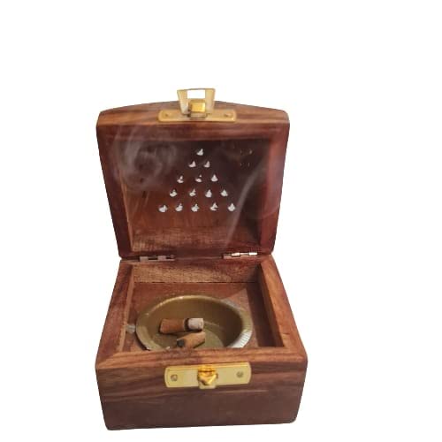 This beautiful Handmade crafted incense stick case or holder makes for an interesting table piece that enhances the look of your home and Pooja room. It is a clean and safe way to burn incense as the ash is collected in an enclosure without creating mess. It is safe to use as it prevents children from getting burns. Metallic Plate For Dhoop Easy To Clean - It Has An Ash Collecting Enclosure That Enables Easy Disposal Of Ash. As The Ash Is Collected At One Point It Prevents The Ash From Falling and Creating Mess. Safe - As The Burned Incense Stick Is Covered with The Lid It Is Safe When Children are around. Prevents Burns Caused By Agarbatti.