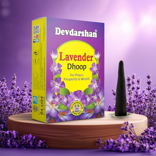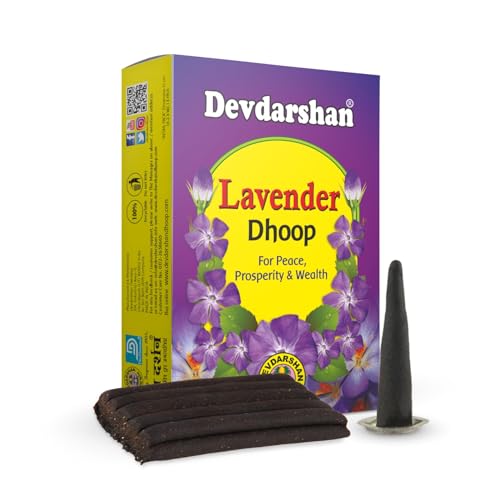 Transform your home into an enchanted sanctuary of peace and spirituality with Devdarshan Lavender Dhoop. The sweet Lavandula (Lavender) fragrance will gently float its way throughout your home instantly lifting the mood and creating a kind and inviting atmosphere. SAFETY INSTRUCTION: Always Keep burning dhoop / Incense sticks on dhoop / Incense stand / holder make sure you keep away from flammable articles ashes should always fall on fire proof or heat resistant surface.