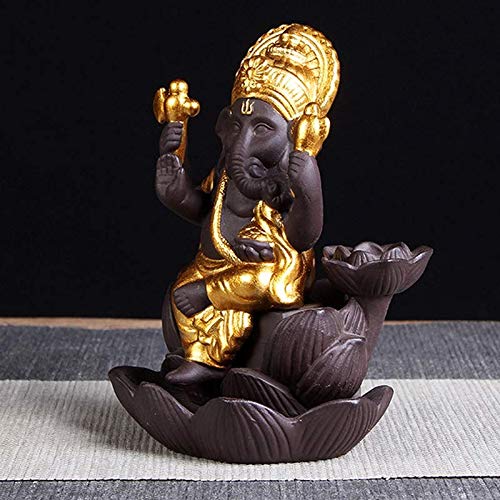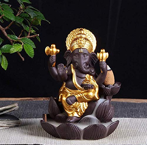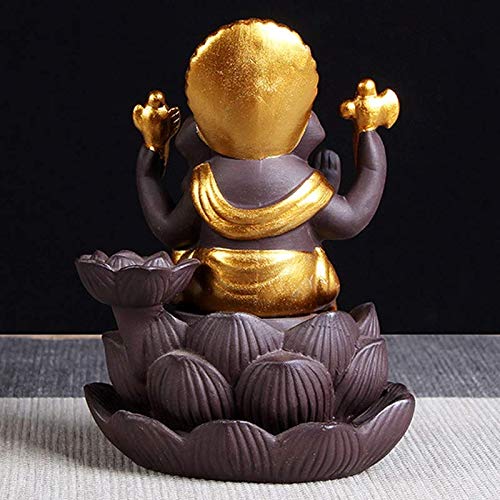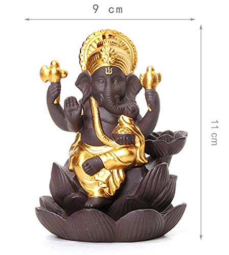 MEENAKARI ENAMEL PRODUCTS Lotus Ganesha Smoke Backflow Fountain Cone Incense Holder Decorative Showpiece with Free 10 Smoke Backflow Scented Cones Incense (Gold)