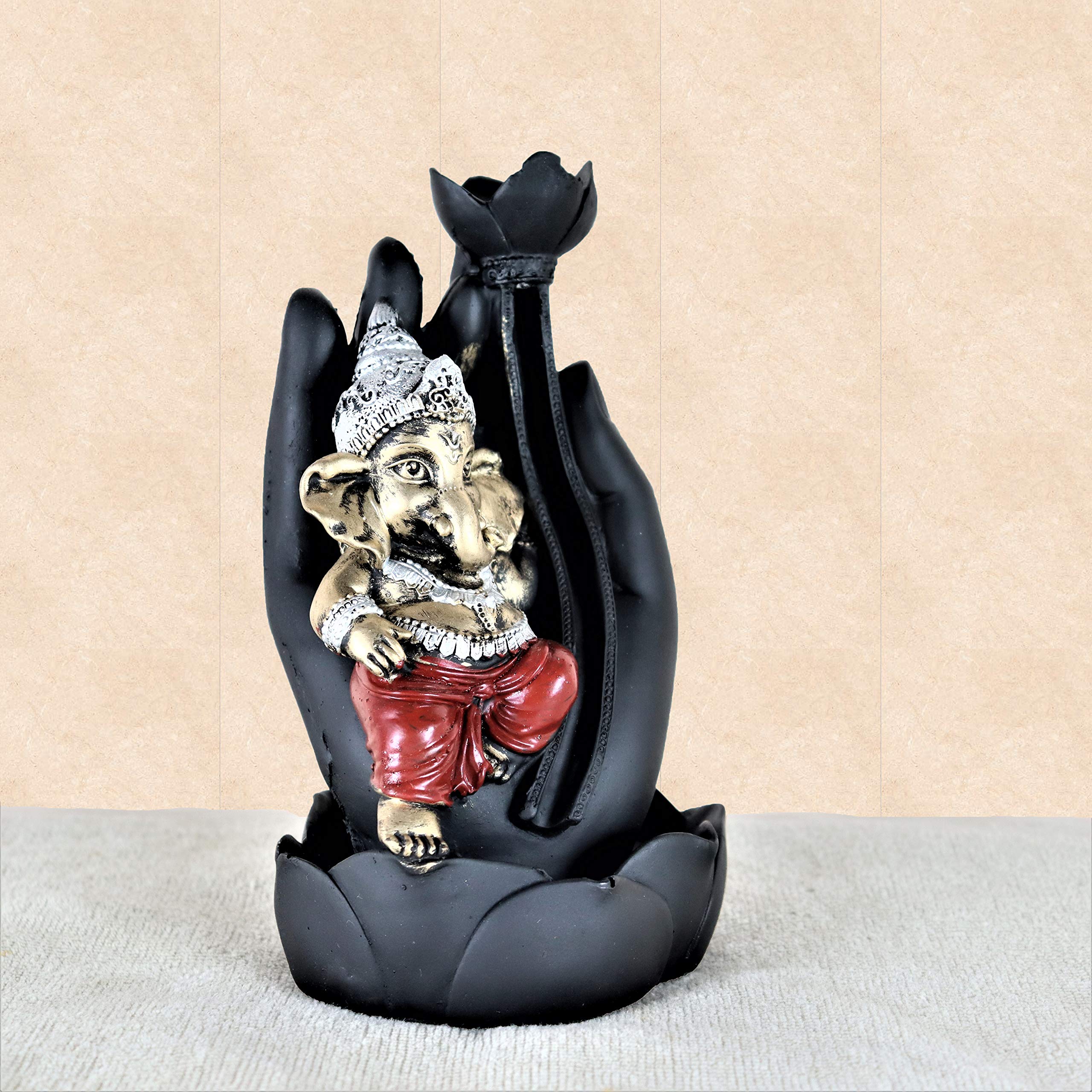 MEENAKARI ENAMEL PRODUCTS Poly Resin Ganesha Sitting on Palm Smoke Backflow Fountain Cone Incense Holder with 20 Smoke Backflow Scented Cone Incenses