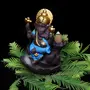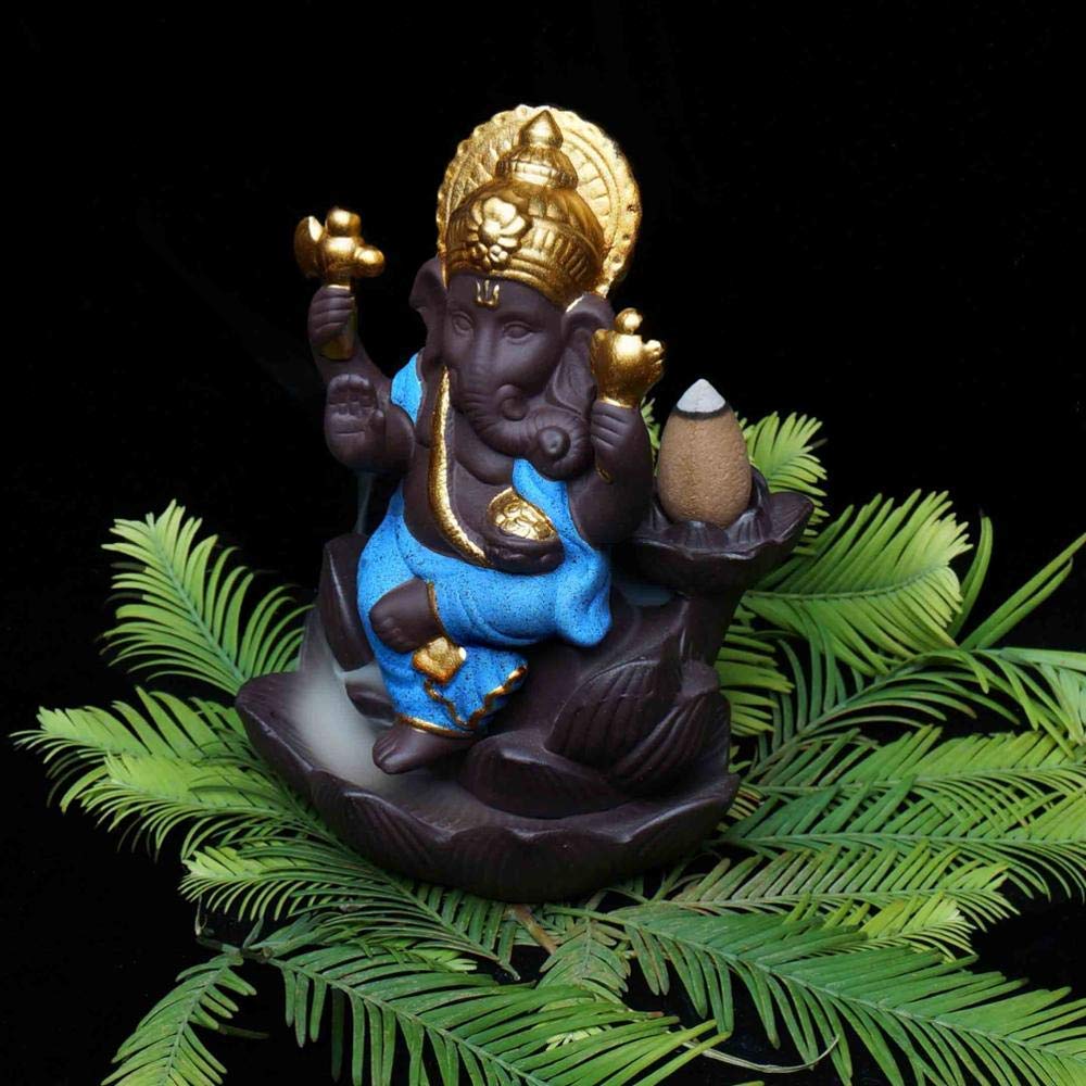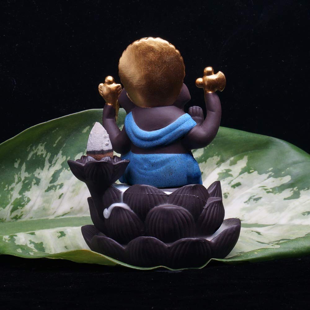 MEENAKARI ENAMEL PRODUCTS Polyresin Lotus Ganesha Smoke Backflow Fountain Incense Cone Holder Decorative Showpiece Gift with Free 10 Smoke Backflow Scented Cone Incenses (Blue)
