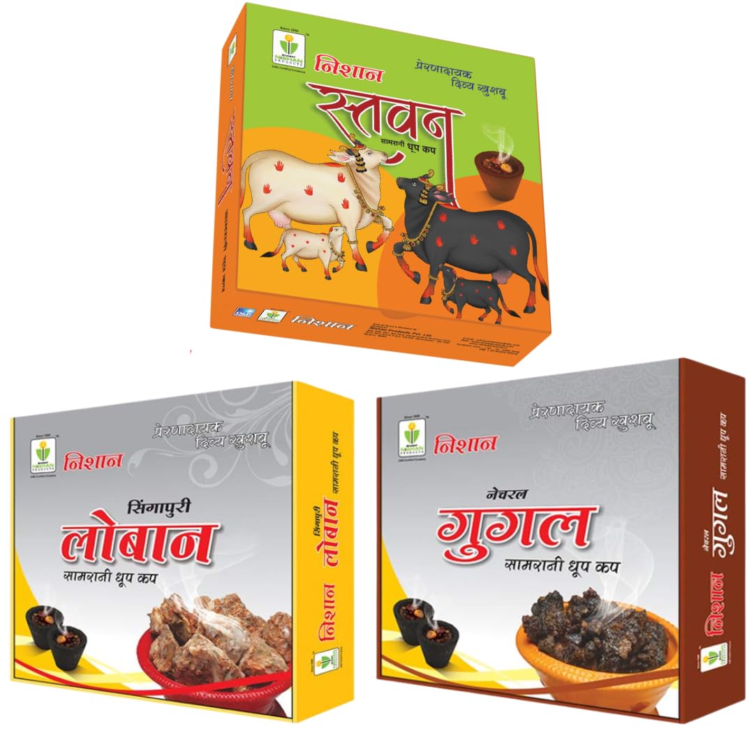 Package Content : 108 Pcs ( 36 Pcs Stavan 36 Pcs Guggal and 36 Pcs Loban) Premium Natural Guggal Stavan And Singapuri Loban Dhoop Cup In Box With Long Lasting Fragrance (1 Cup Lasts For Approx. 30 Minutes).