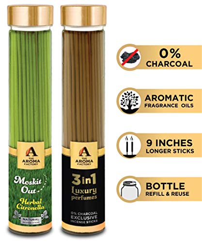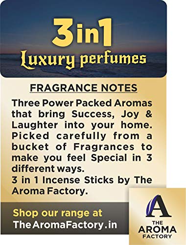 3 in 1The Aroma Factory Out & 3 in 1 Incense Sticks Agarbatti () Bottle Pack of 2 x 100 Experience the Soothing Scent of Exclusive Incense Sticks Agarbatti by The Aroma Factory - A Quality product by Panjon Limited. . Made with Natural Essential Oils and Content indulge in the Soothing Aroma of Incense Sticks by The Aroma Factory. Try all fragrances of Agarbatti and Dhoop Batti by The Aroma Factory : Incense Sticks Agarbatti sandalwood agarbathi agarbati dhoop dhoopbatti dhoopbati dhoop batti agarbathies incensestick incensesticks incense aroma pooja puja . Suitable for gifting : Add more aroma to your loved ones life by getting them these fragrance sticks on occasions such as Diwali Rakhi and other festive events. 100% Quality Assured.