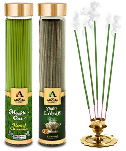 LobanThe Aroma Factory Out & Loban Incense Sticks Agarbatti () Bottle Pack of 2 x 100 Experience the Soothing Scent of Exclusive Incense Sticks Agarbatti by The Aroma Factory - A Quality product by Panjon Limited. . Made with Natural Essential Oils and Content indulge in the Soothing Aroma of Incense Sticks by The Aroma Factory. Try all fragrances of Agarbatti and Dhoop Batti by The Aroma Factory : Incense Sticks Agarbatti sandalwood agarbathi agarbati dhoop dhoopbatti dhoopbati dhoop batti agarbathies incensestick incensesticks incense aroma pooja puja . Suitable for gifting : Add more aroma to your loved ones life by getting them these fragrance sticks on occasions such as Diwali Rakhi and other festive events. 100% Quality Assured.