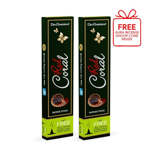 Devdarshan Red Coral Agarbathies 100g + 100g with Dhoop Cone Free Inside (Pack of 2)