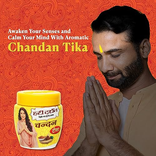 Hari Darshan Pure chandan tika 100% Chemical Free Made with Sandalwood Chandan (Sandalwood) paste is one of the most significant offerings to Deity which makes Chandan tika the most loved fragrance. Fragrance of sandalwood relaxes our mind calms our nervous system and awakens our senses. Sandal paste has its own medicinal properties and is usually applied as a dot on the forehead to activate our Ajna Chakra. It is even applied across the forehead to reap maximum benefits. By applying tilak on the forehead regularly People feel peace and relaxation. It is believed that the house of the person applying sandalwood tilak remains full of food and wealth and good luck increases.