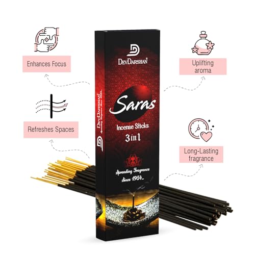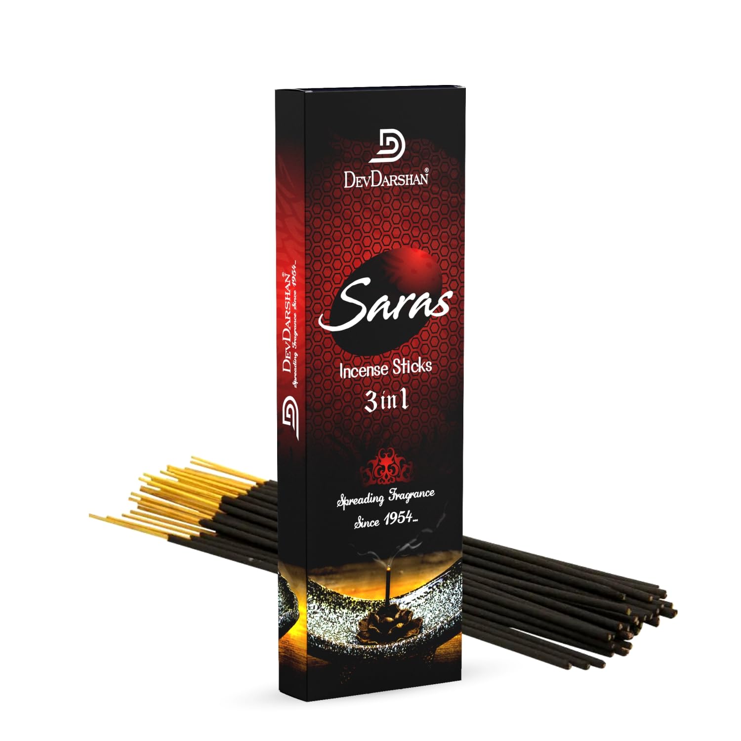 Devdarshan Saras Agarbathies is a 3 in 1 combination pack of premium fragrances 40g Agarbathies in each unit. Usage of the Incense sticks - For meditation or spiritual purpose. - Creates an aura that your prayer reaches the divine and is completed. - Healing power that has a soothing effect on the mind. Why Choose us? Since 1954 Devdarshan believed âQuality is Highest Priorityâ. We are manufacturing premium quality Dhoop Agarbatti Hawan Samagri Dry Dhoop Cones Chandan Dhoop Sticks & Sambrani Dhoop Cup Cones. The very name is an evidence for our popularity among the masses. Being at the culmination we have not only ruled out the markets nationwide but also abroad. We put forth every gesture just to serve the pious need of the masses to pray to the Almighty. Our Incense sticks are made from bamboo sticks and charcoal. They are made by creating the best mixture of essential oils barks flowers resins and they are worked into a tar like roll or they are just blended together. The combination of all these creates an amazing and pleasant aromatic smell offering you the best experience for all your purposes.