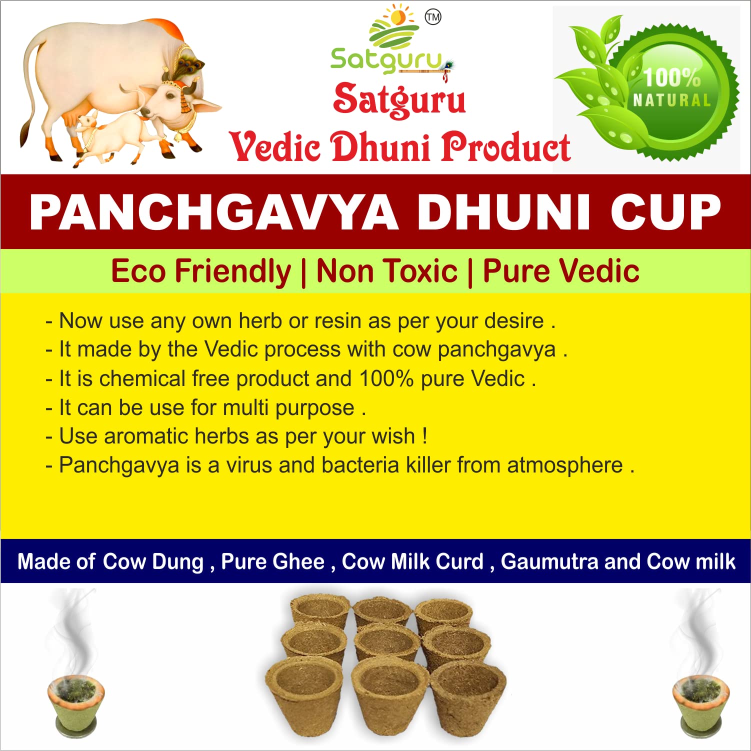 Satguru Cow Panchgavya Dhuni Cups (Empty) Sambrani Dhoop Cups (100 Pieces)