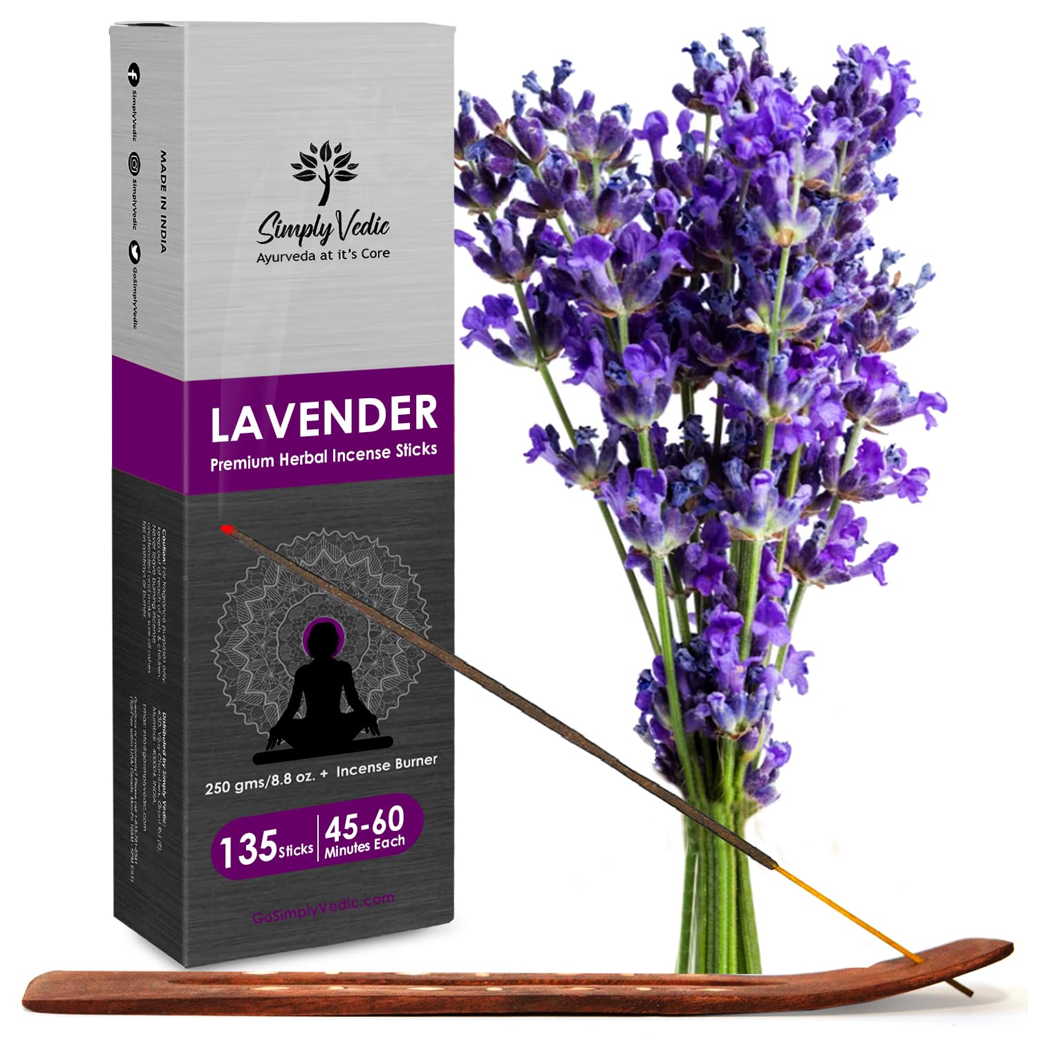 Longetivity & Right for Everyone: Simply-Vedic Premium Lavender Incense Stick Agarbatti are hand rolled in a formulation mix using natural extracts as per the Vedic ancient. Each pack contains: 250 Grams / 8.8 oz (Approx. 135 Incense Sticks) with Free INC