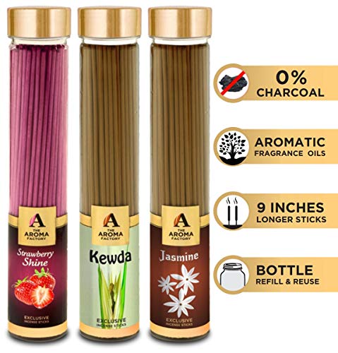 Scent:Strawberry Kewda & JasmineThe Aroma Factory Strawberry Kewda & Jasmine Incense Stick Agarbatti (100% Herbal) Bottle Pack of 3 x 100 Experience the Soothing Scent of Exclusive Incense Sticks Agarbatti by The Aroma Factory - A Quality product by Panjon Limited. . Made with Natural Essential Oils and Content indulge in the Soothing Aroma of Incense Sticks by The Aroma Factory. Try all fragrances of Agarbatti and Dhoop Batti by The Aroma Factory : Incense Sticks Agarbatti sandalwood agarbathi agarbati dhoop dhoopbatti dhoopbati dhoop batti agarbathies incense stick incense sticks aroma pooja puja . Suitable for gifting : Add more aroma to your loved ones life by getting them these fragrance sticks on occasions such as Diwali Rakhi and other festive events. 100% Quality Assured.