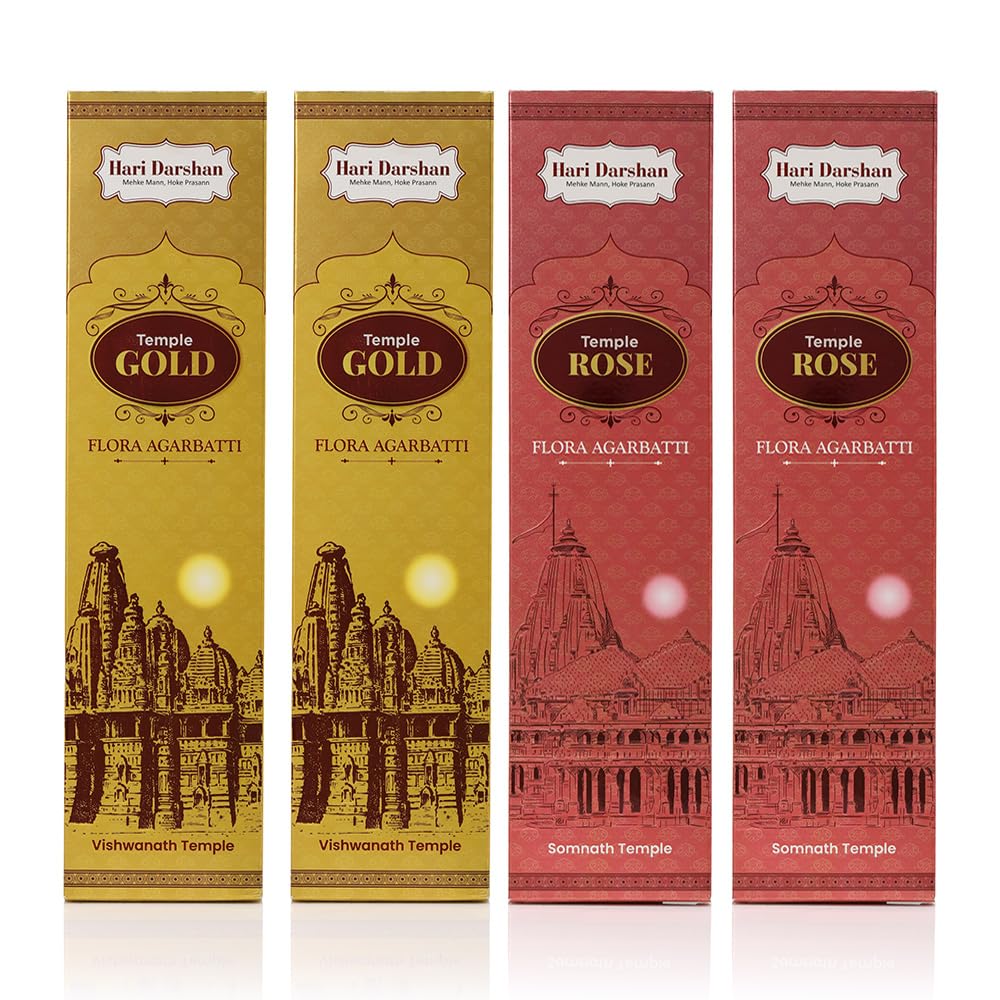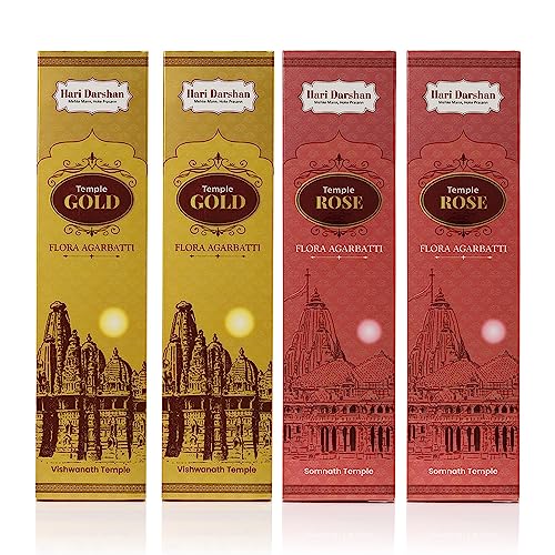 Hari Darshan Temple Premium Flora Combo Agarbatti | Rose | Gold | Long Lasting Fragrance Masala Flora agarbattee Incense Sticks for Daily Pooja, Havan, Meditation and Yoga | Pack of 4-12 Sticks Each