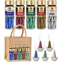 The Aroma Factory Organic Incense Cones (Saffron Sandal Green Apple Fresh Active White Sage Rose) No Charcoal | No Bamboo | Non Toxic | Assorted Herbal Dhoop5x90g Bottle Jute Gift Set with Holder