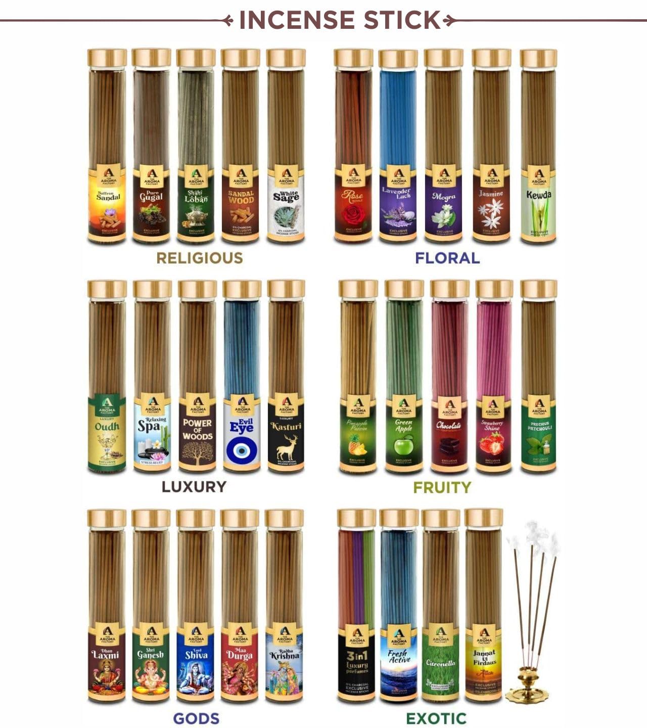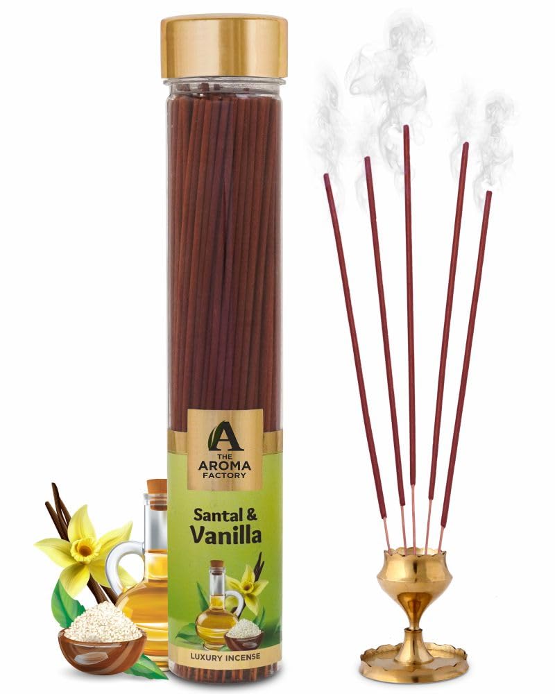 The Aroma Factory Organic Incense Sticks (Herbal Agarbatti for Smudging Cleansing) 0% Charcoal 0% Sulphur 3 x 100g Bottle (Santal & Vanilla Jasmine & Chocolate & Clove & Lemon)