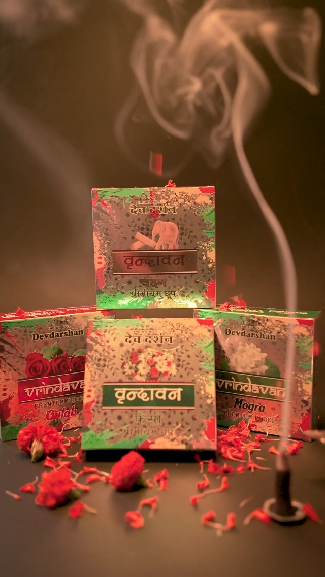 Transform your home into an enchanted sanctuary of peace and spirituality with Devdarshan Vrindavan Dhoop. This floral fragrance will gently float its way throughout your home instantly lifting the mood and creating a kind and inviting atmosphere. SAFETY INSTRUCTION: Always Keep burning dhoop / Incense sticks on dhoop / Incense stand / holder make sure you keep away from flammable articles ashes should always fall on fire proof or heat resistant surface.