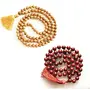 CHURU SANDALWOOD CARVED Handcrafted Original Fragrant White & Red Sandalwood Mala Rosary Combo Lal Safed Chandan Jaapmala Wooden Knotted Japa Maala for Meditation Pooja Chanting Prayer Beads - Pack of 2